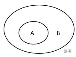 特别的,如果$A \subseteq B$,且$A \ne B$,那么我们说$A$真包含于$B$,记做$A \subsetneqq B$,其中集合$A$是集合$B$的真子集。