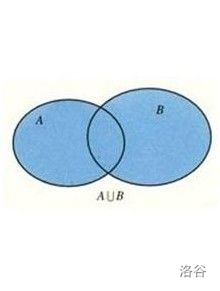 看上面那个Venn图,两个圆表示集合$A$和$B$,蓝色部分就是$A$并$B$。